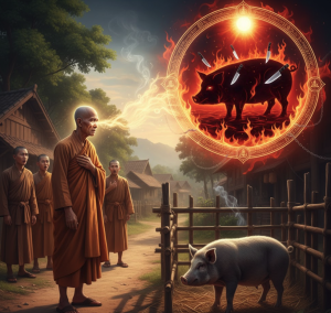 Di sebuah kuil hiduplah seorang petapa bersama para muridnya. Suatu ketika mereka pergi untuk meminta sedekah makan di daerah pemukiman warga. Di perjalanan petapa dan para muridnya melihat ternak warga yaitu seekor babi. Kemudian petapa tersebut tiba-tiba menangis saat melihat babi tersebut.